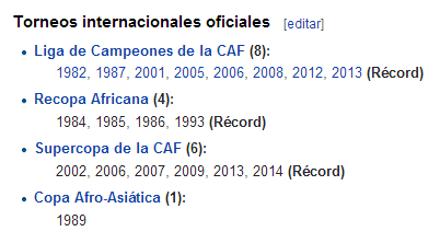 Las mismas Copas que jugamos acá pero de África. Es un dato estadistico nada mas, esta claro que no es el cuadro mas grande del mundo