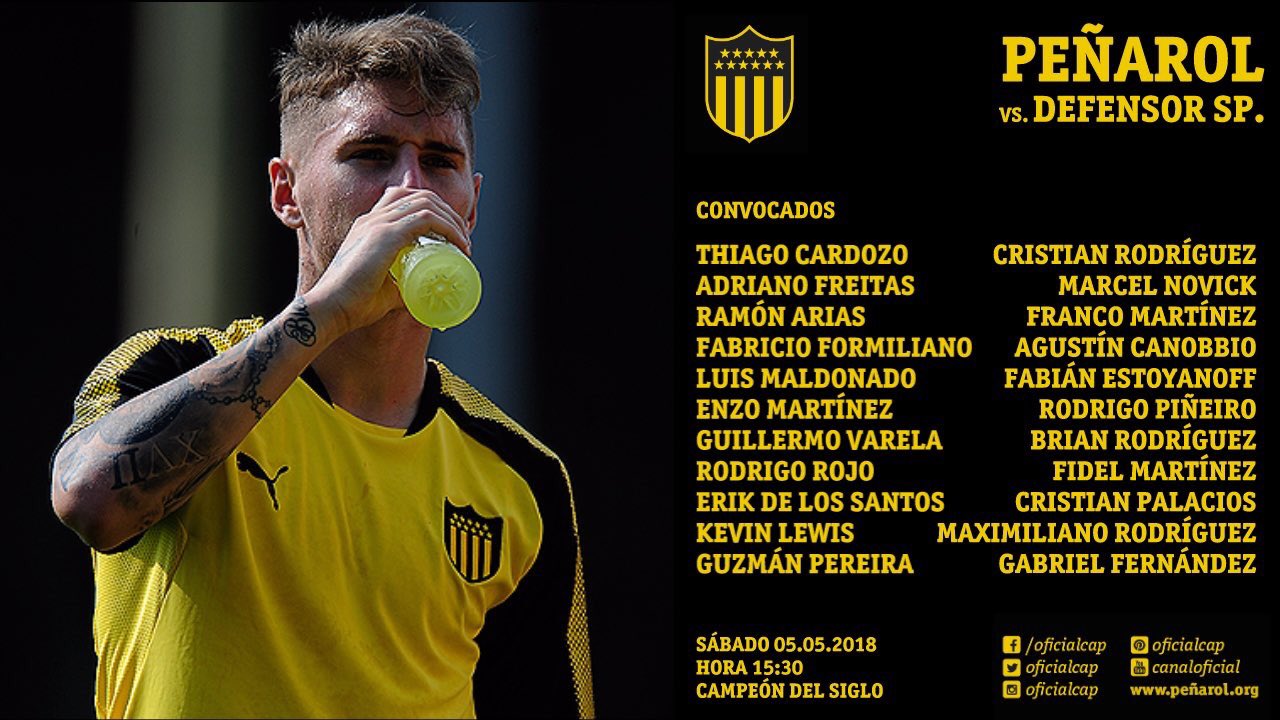Probable Peñarol vs Defensor Sp: Cardozo, Varela, Formiliano, Arias, Rojo; Estoyanoff, Pereira, Cebolla Rodríguez, Canobbio; Maxi Rodríguez y Toro Fernández.