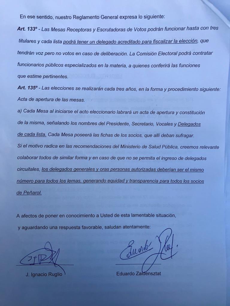 presentó denuncia en la Corte Electoral por supuestas irregularidades y desigualdades por parte de la Com electoral de Peñarol.