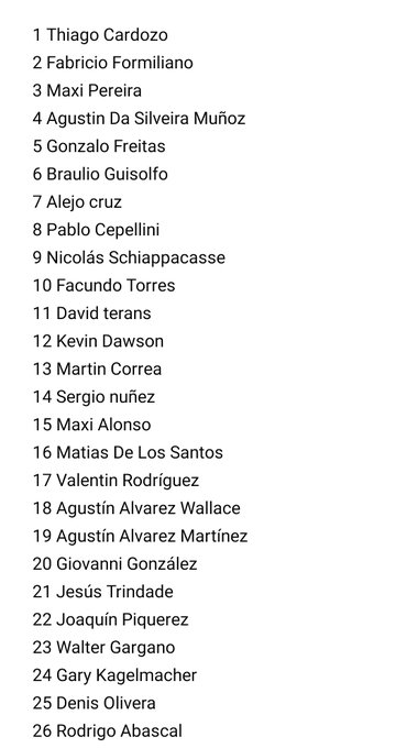 Tristisimo el equipo, tenemos hasta menos que antes (muchas bajas, 1 alta). Se juegan los 2 en Montevideo y ellos perdieron titulares.