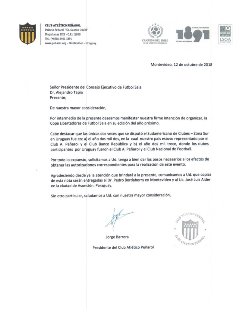 COPA LIBERTADORES 2019. Con la firma de nuestro Presidente @JorgeCBarrera, hacemos oficial la postulación a la organización de la Copa Libertadores para el año próximo con Sede en Montevideo.