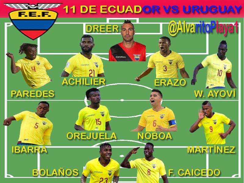 La Tricolor no podrá contar con los siguientes jugadores por sanción: Arturo Mina, Enner Valencia, Luis Caicedo, Cristian Ramírez, Jefferson Montero. Mientras que por lesión no estarán Pedro Quiñónez, Antonio Valencia, Ángel Mena y Matías Oyola.